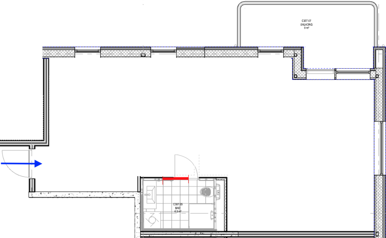 convert this floor plan into a realistic isometric 3d view of a full house show the space from an elevated angle with furniture walls and details visible create a 2 5d isometric furnished apartment layout and interior visualization based on the uploaded floor plan sketch important instructions use the outer apartment boundary exactly as shown keep the bathroom in its current location and size exactly as drawn ignore the red line inside the bathroom area it is not part of the final design keep the balcony in its current position windows are floor to ceiling create a new interior layout within the apartment shell layout requirements design the apartment with one large bedroom and one small bedroom create an open plan living room and kitchen in the remaining main space ensure the layout feels logical spacious and functional keep a natural circulation from the entrance to bedrooms bathroom and main living area suggested zoning place the large bedroom in the quieter part of the apartment with enough space for a double bed and wardrobe place the small bedroom as a compact bedroom guest room or home office bedroom let the main open plan living room kitchen occupy the brightest and largest part of the apartment with good connection to the balcony interior style warm modern nordic scandinavian style light oak wood flooring in dry areas warm off white walls soft palette of beige sand greige taupe and natural wood tones clean lined scandinavian furniture natural materials such as oak linen wool and matte stone add some green indoor plants for warmth and liveliness kitchen living area elegant open kitchen with integrated appliances light oak or warm painted kitchen fronts light stone countertop dining table for 4 6 people comfortable sofa coffee table rug and soft styling make the room feel bright welcoming and spacious large bedroom double bed wardrobe storage warm and calm nordic styling soft textiles and minimal decor small bedroom compact but attractive layout single bed or flexible guest room office solution clean and functional scandinavian design bathroom keep bathroom exactly where it is style it with light stone look tiles floating vanity wall hung toilet and clean nordic detailing lighting and mood soft natural daylight warm interior lighting bright but cozy atmosphere rendering style top down isometric axonometric 2 5d view realistic architectural visualization calm elegant brochure friendly presentation avoid heavy furnitures in front of the ceiling height windows moving the bathroom using the red line as part of the design dark interiors industrial style glossy materials cluttered furniture layouts the blue arrow indicates the entry point to the apartment use the same furniture as shows on the plan do not change the orientation of the floorplan