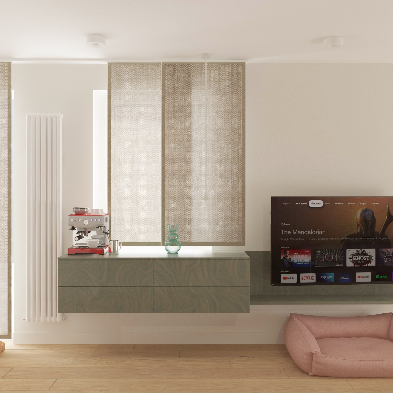 do not modify the original model geometry proportions layout or structure in any way keep the exact same architecture and forms only improve the materials textures and surface details to make the visualization significantly more realistic enhance material accuracy physically correct textures proper roughness reflections bump normal maps improve lighting realism shadows and global illumination focus on achieving high end photorealism through better material definition realistic light interaction subtle imperfections and natural color balance without altering the shape scale or design of the building