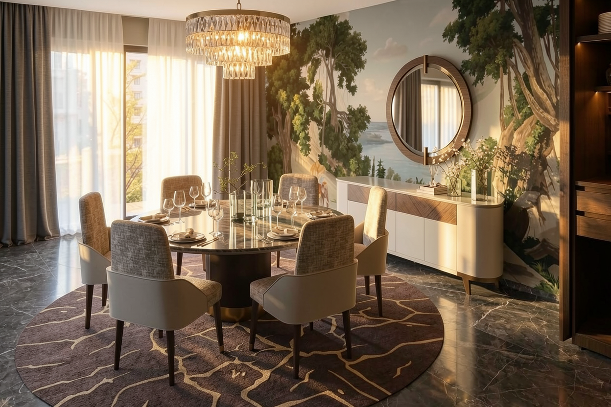 make photo realistic with natural light only from camera corner and artificial light in hallway and kitchen