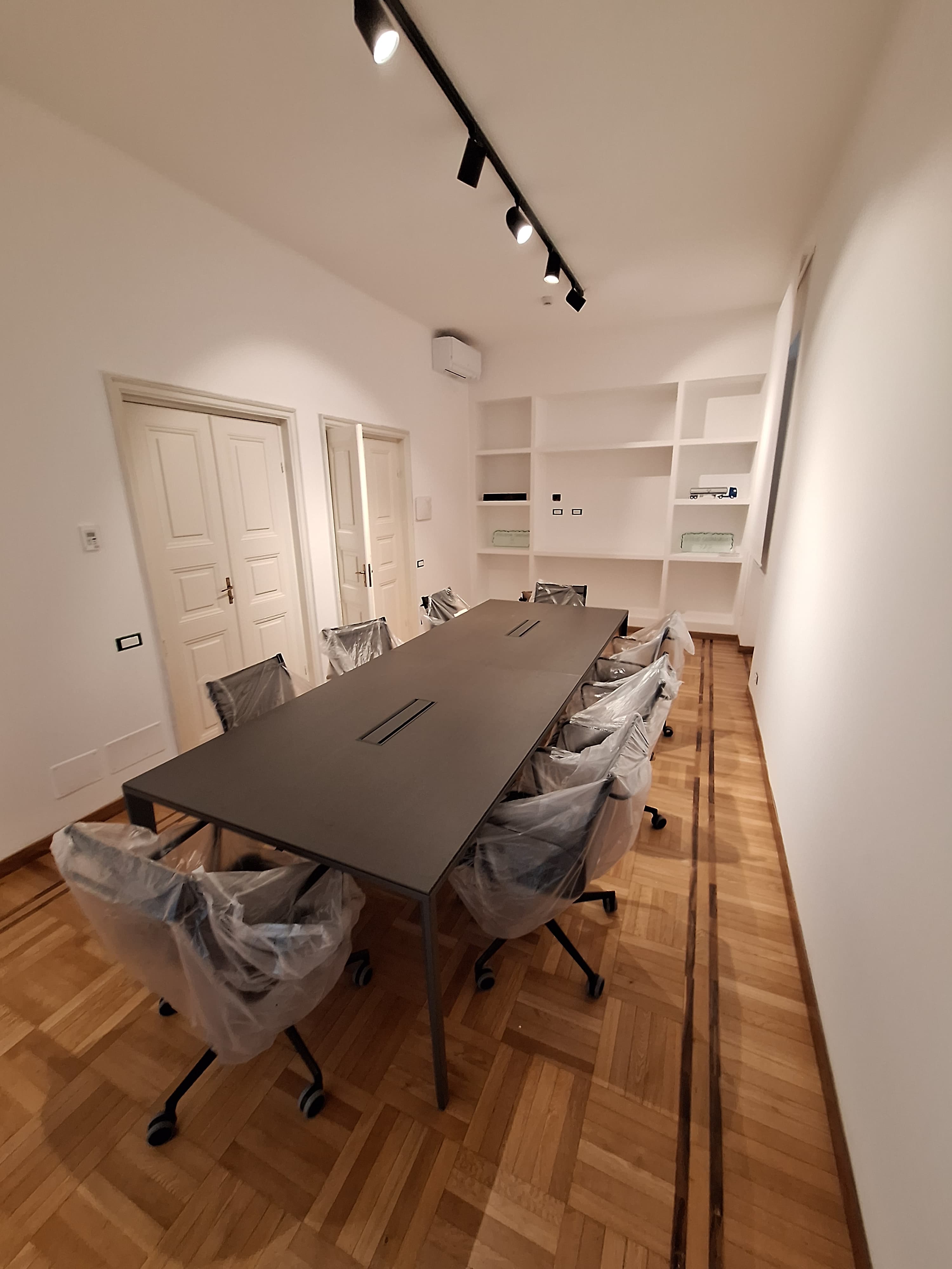 posiziona 8 pnnelli acustici verticali a soffitto bianchi