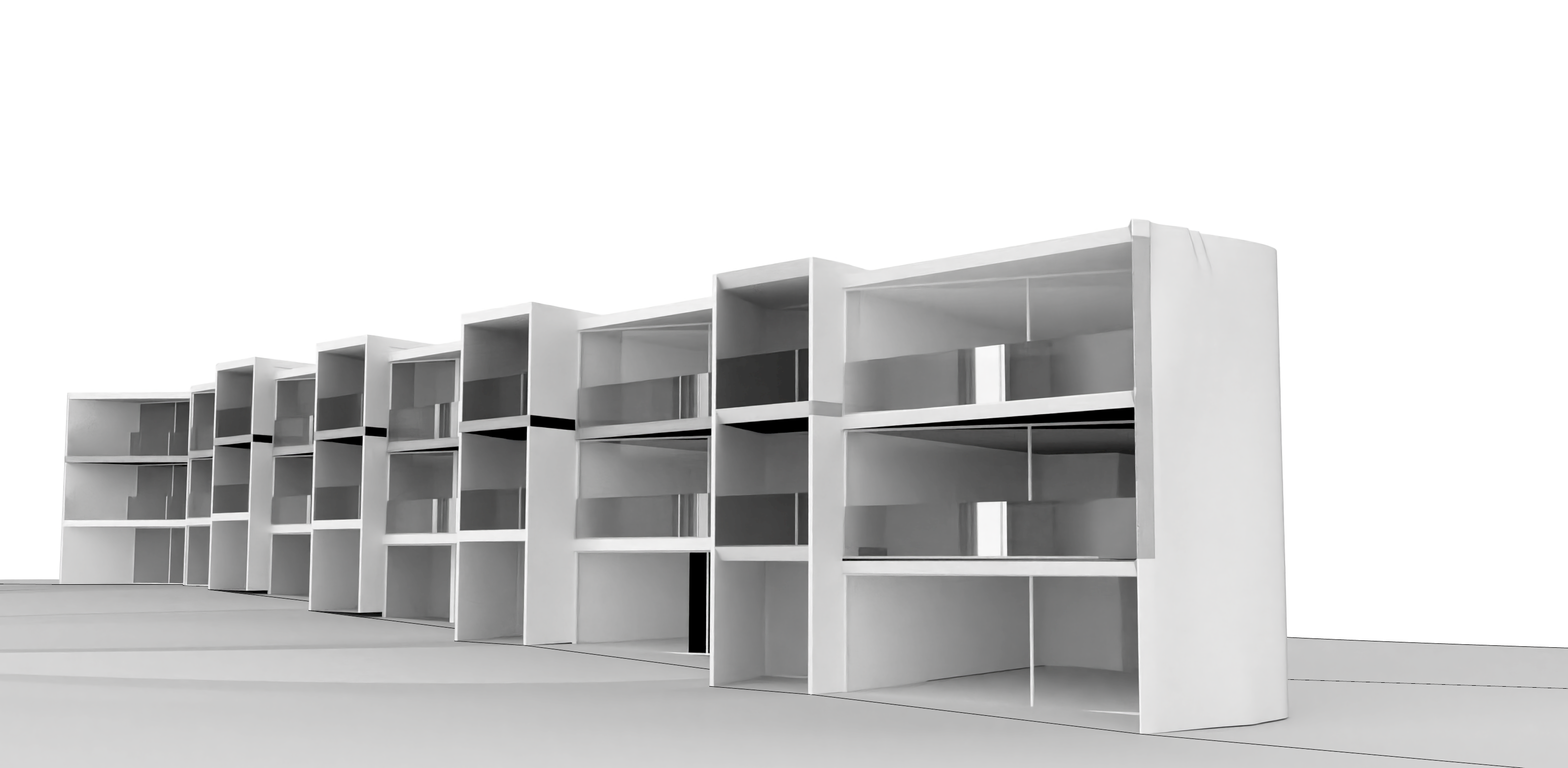 contemporary exterior shot residential building constructed with 3d printed concrete full of green infornt gardens architecture