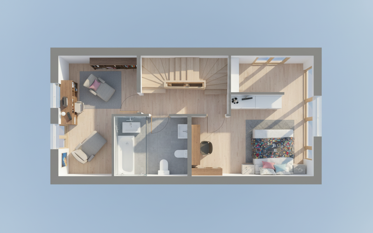 modern apartment interior realistic lighting wood floor minimal design