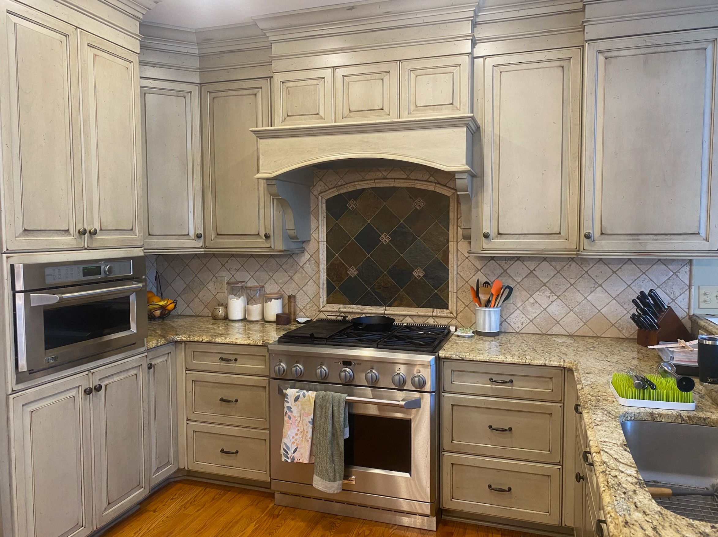 replace backsplash tile to a deep terracotta square tile