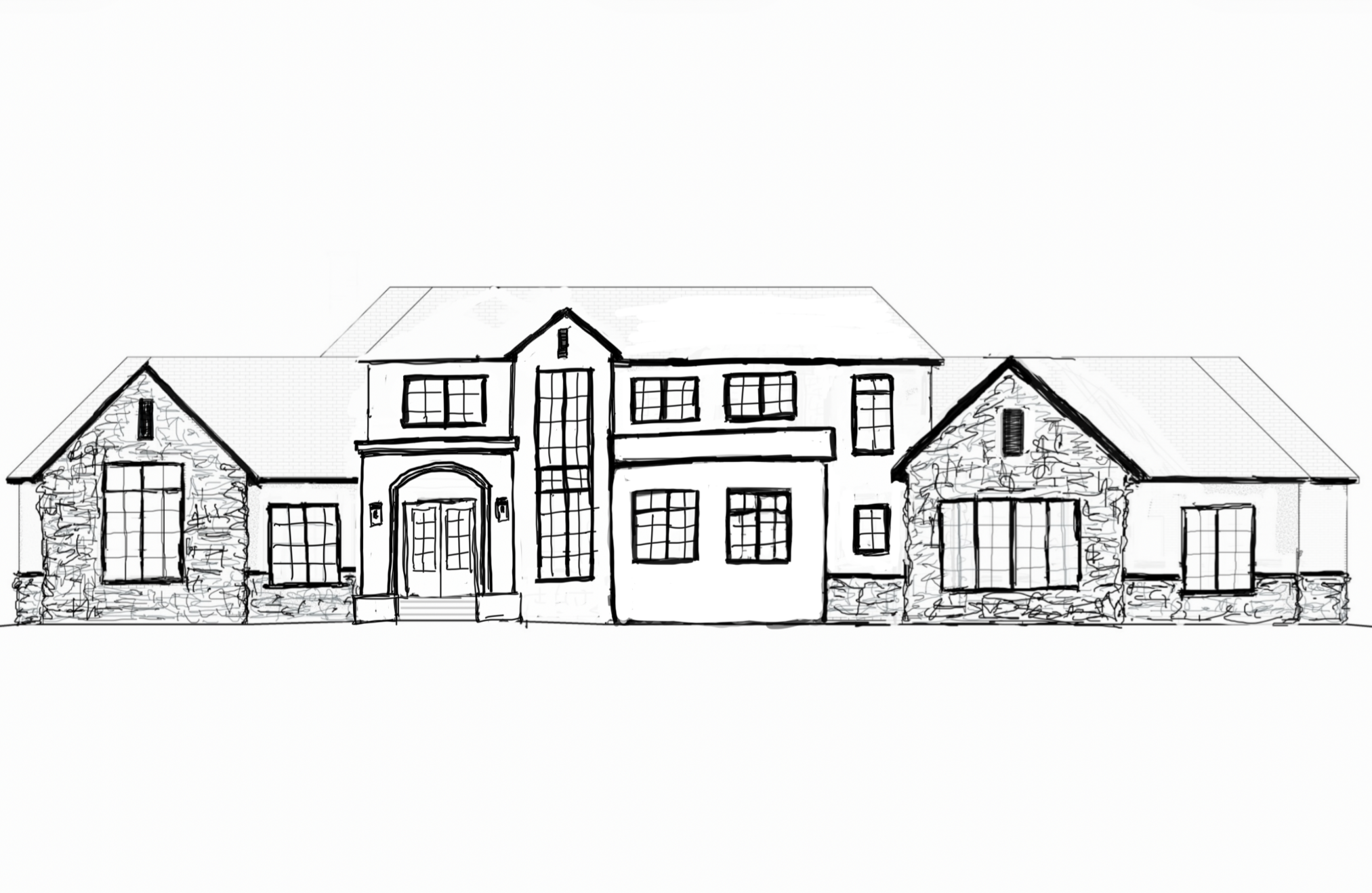 use lots of textures to render this exterior warm natural tones and whites make the roof dark make the landscaping look crisp and clean