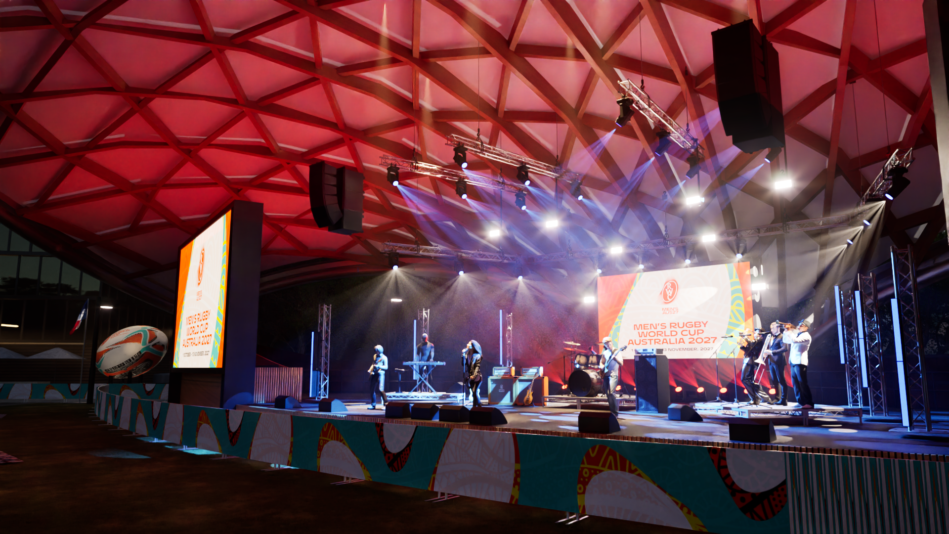 show an audience having fun facing towards the stage