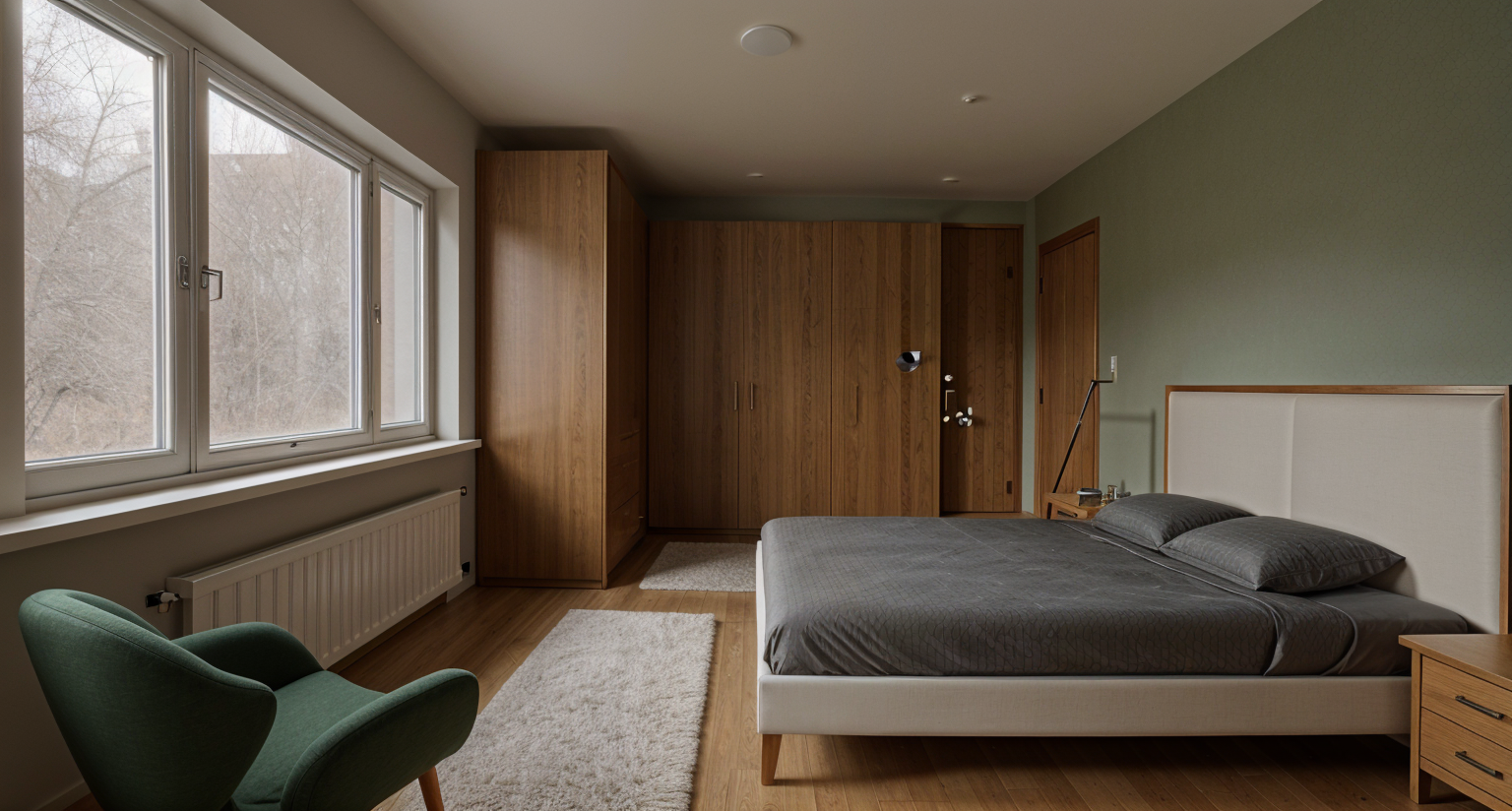 interior scene white wardrobe and parquet floor and modern mimial style