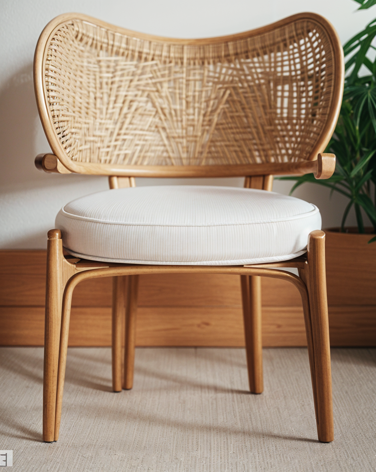 modernist weaving inspired chair wooden wire brush finish legs upholstered seat and back architecture