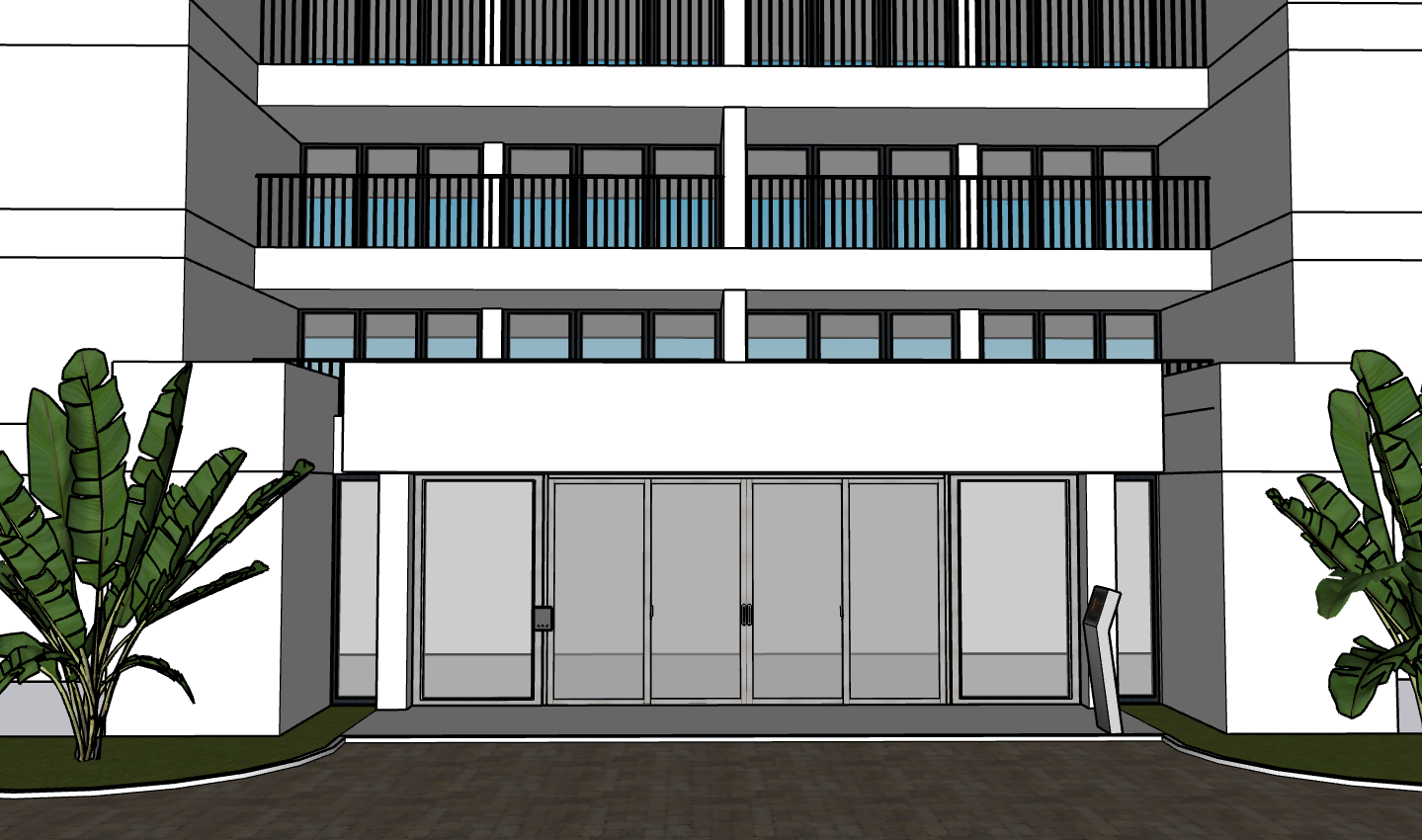 the white walls are just straoght white stucco not with likes and the front entrance theres no window treatment the glass is just more polarized