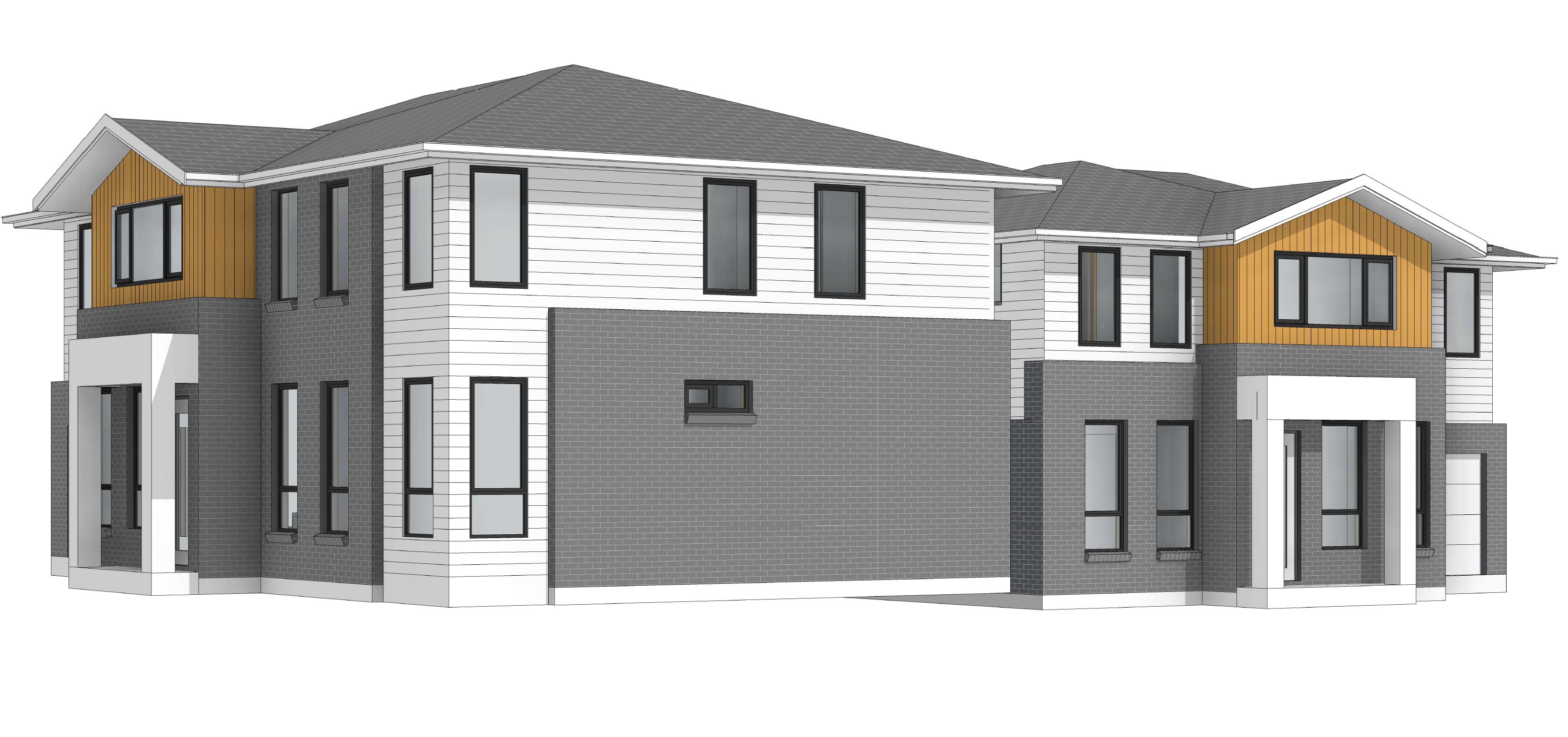 a realistic architectural visualization of a contemporary two storey duplex in sydney the exterior features a sophisticated mix of recycled red brick natural timber cladding and off white render large floor to ceiling glass windows and black framed sliding doors connect to a private courtyard set during the golden hour with soft warm sunlight and long shadows the landscaping includes native australian plants a manicured lawn and a sleek concrete driveway 8k resolution photorealistic cinematic lighting architecture