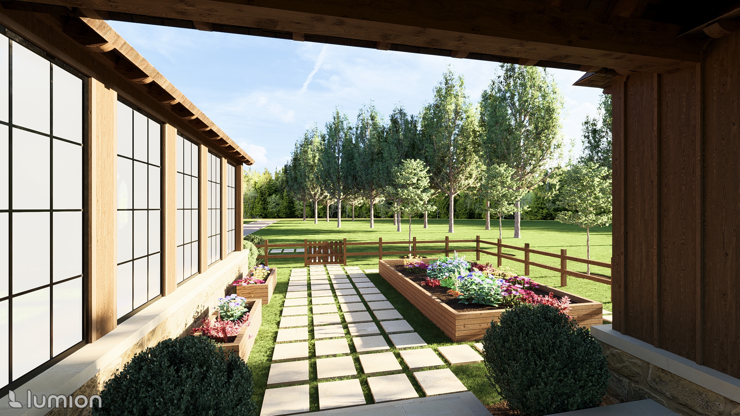 make render a realistic image time of day dusk architectural lighting features dark sunsetting sky