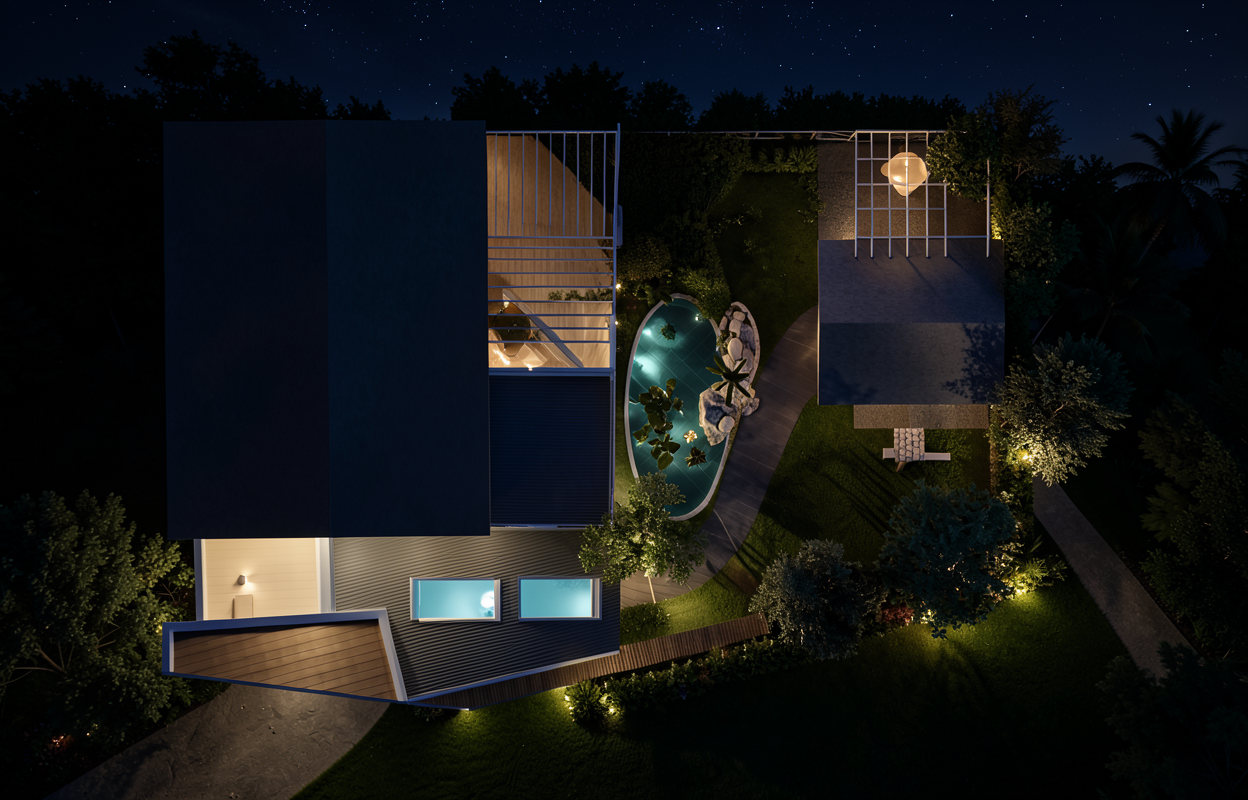 ajoute des lumi res de balisage autour du chemin gravillonn qui serpente autour du bassin