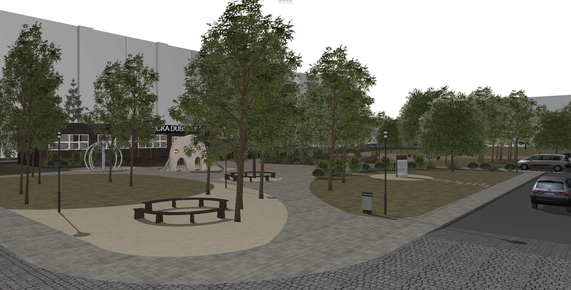 make the textures and trees realistic make the white buildings with windows slovak architecture
