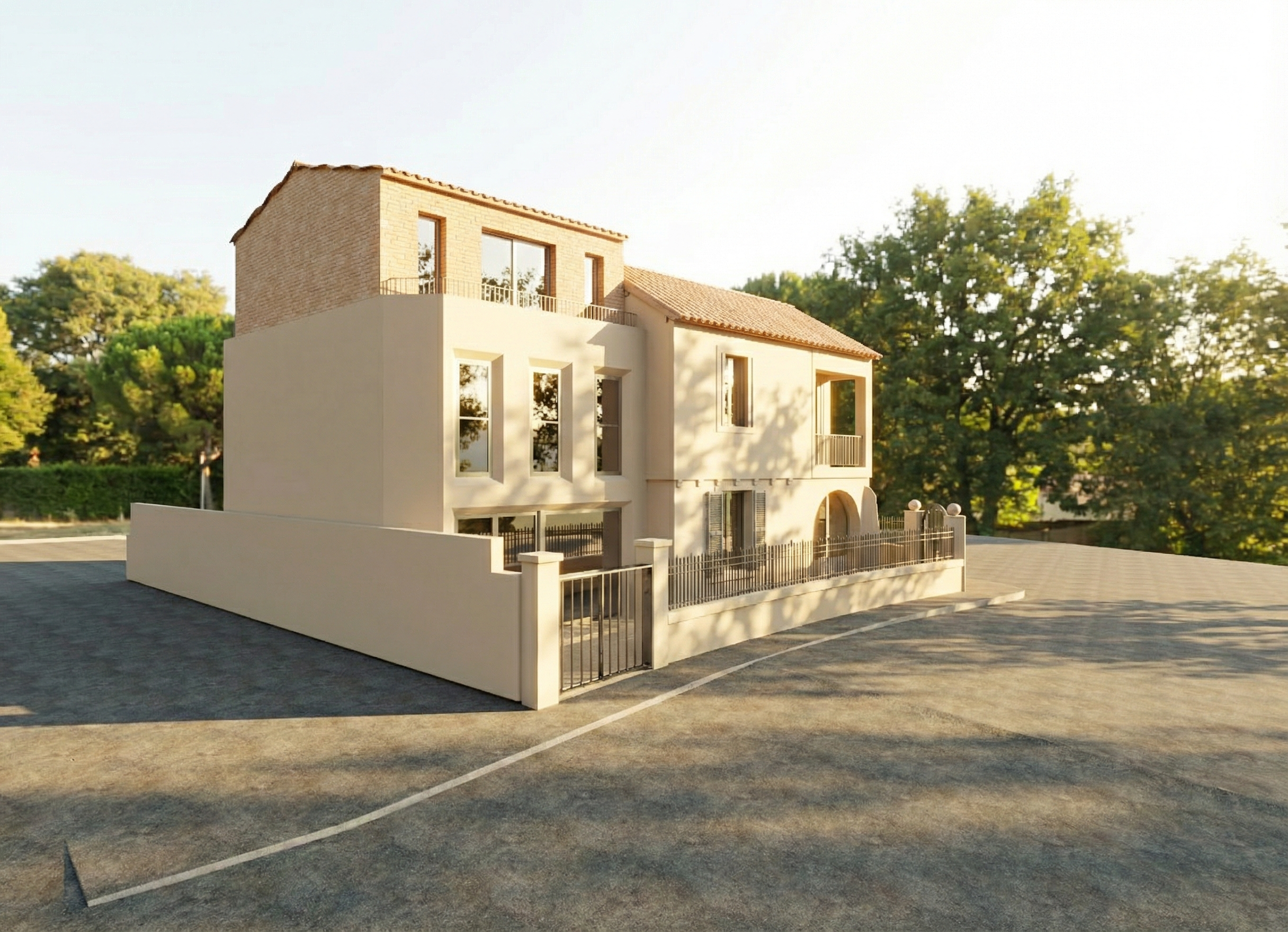 ultra realistic photograph of a traditional stone country house with symmetrical fa ade natural fieldstone masonry with realistic texture variation and brown tones black window and door sashes multi pane windows with subtle reflections slate roof copper roof over front door covered porch with arched windows manicured shrubs and landscaping mature trees in the background soft natural daylight realistic shadows accurate proportions architectural photography dslr photo 35mm lens shallow depth of field global illumination high dynamic range ultra detailed 8k realism true to life materials cinematic yet natural color grading