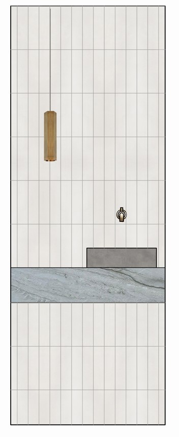 there is a concrete vessel sink over a floating stone counter top there is a wall mounted faucet in gold finish