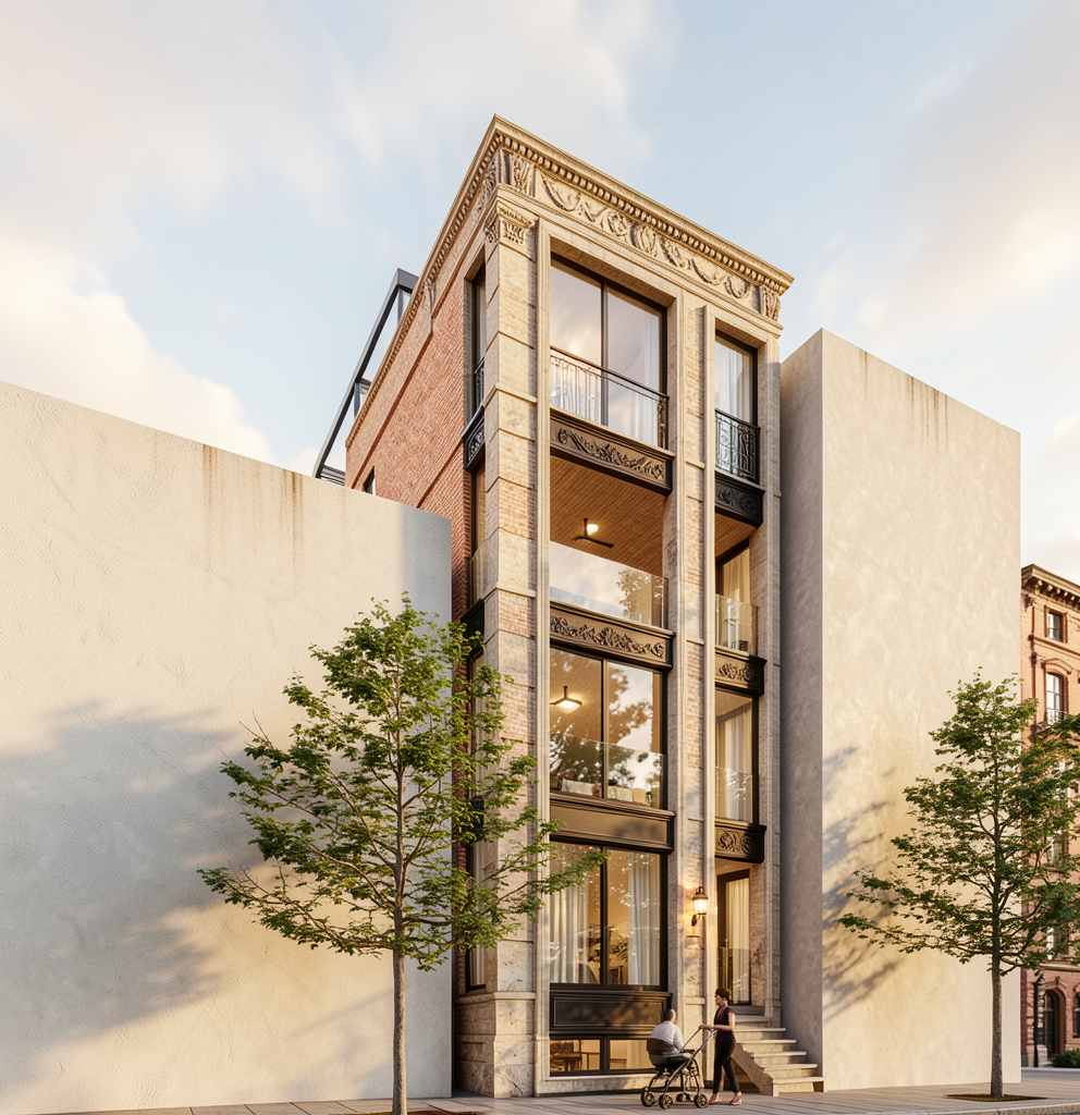 make this image look realistic do not change any geometry do not change any materials the right wall has a mirror the alcove is tiled the elevator doors are brass there are no windows