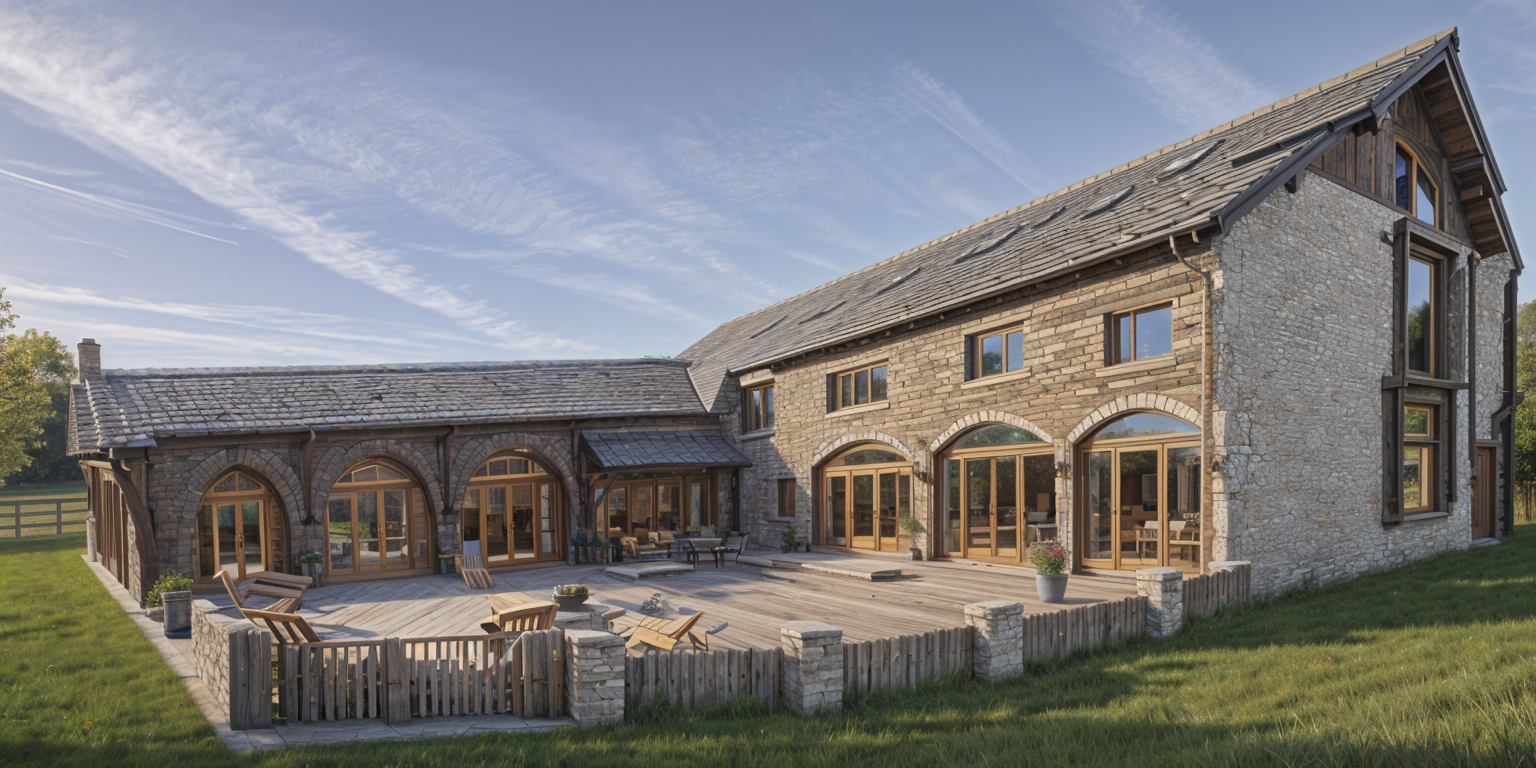 sustainable design exterior shot afternoon setting with interior lights on add tropical vegatation in the foreground and with tropical mountains in background also architecture