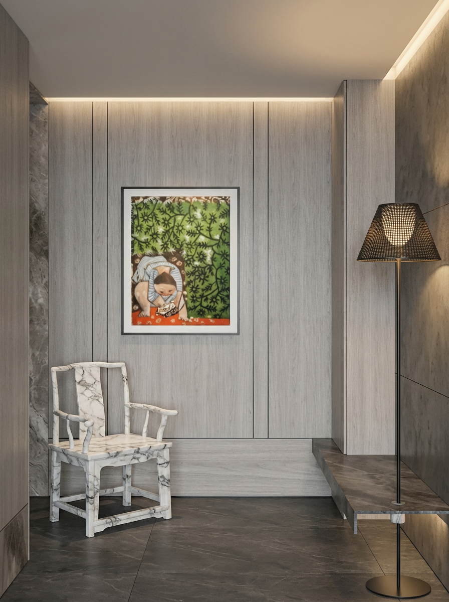 strip led verticale verso il numero 1 dal pannello in verticale applique biemissione in fondo gres lucido dettagli in ottone satinato porte ascensore in acciaio satinato