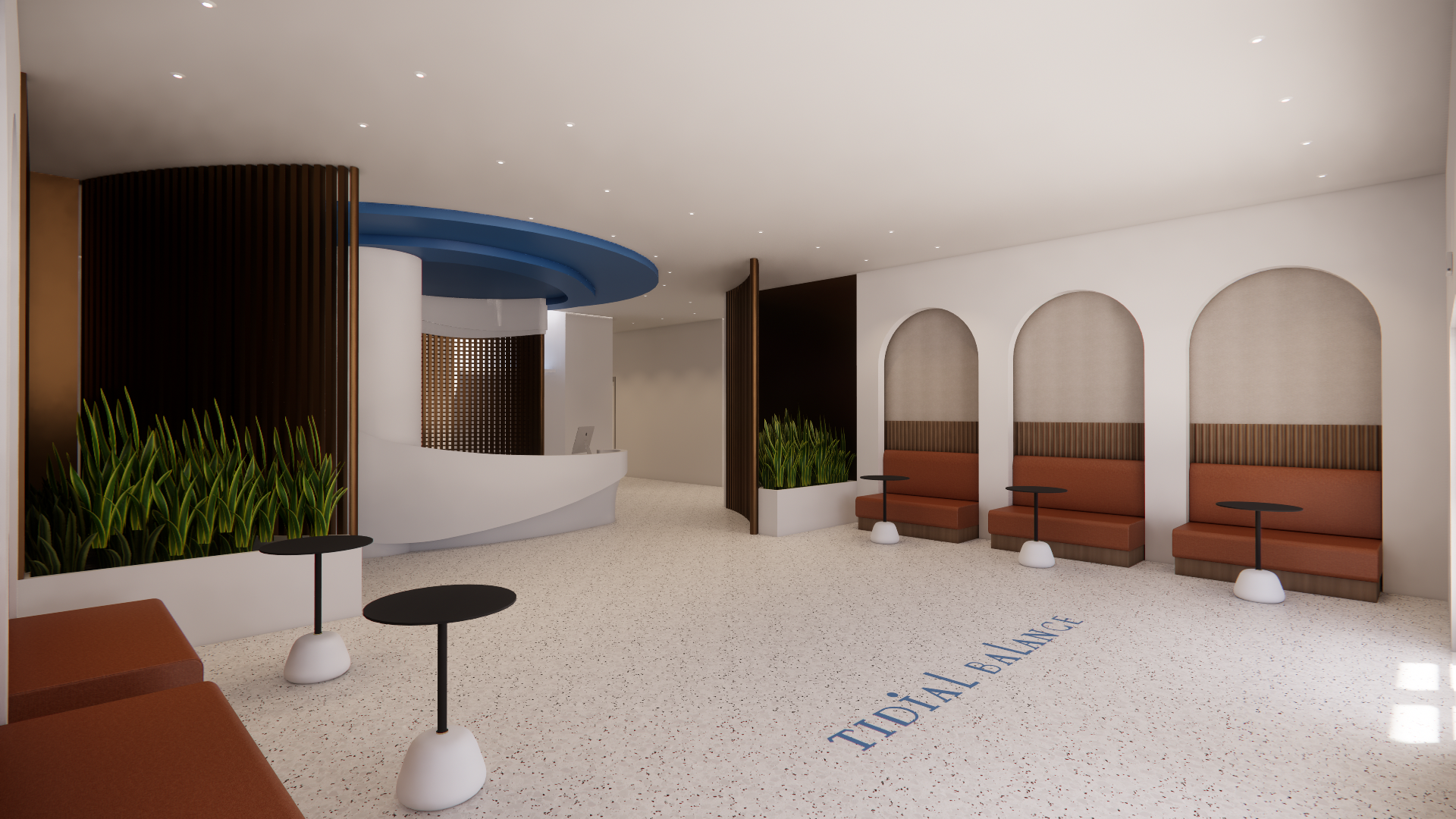 render this lobby realistically change the plants