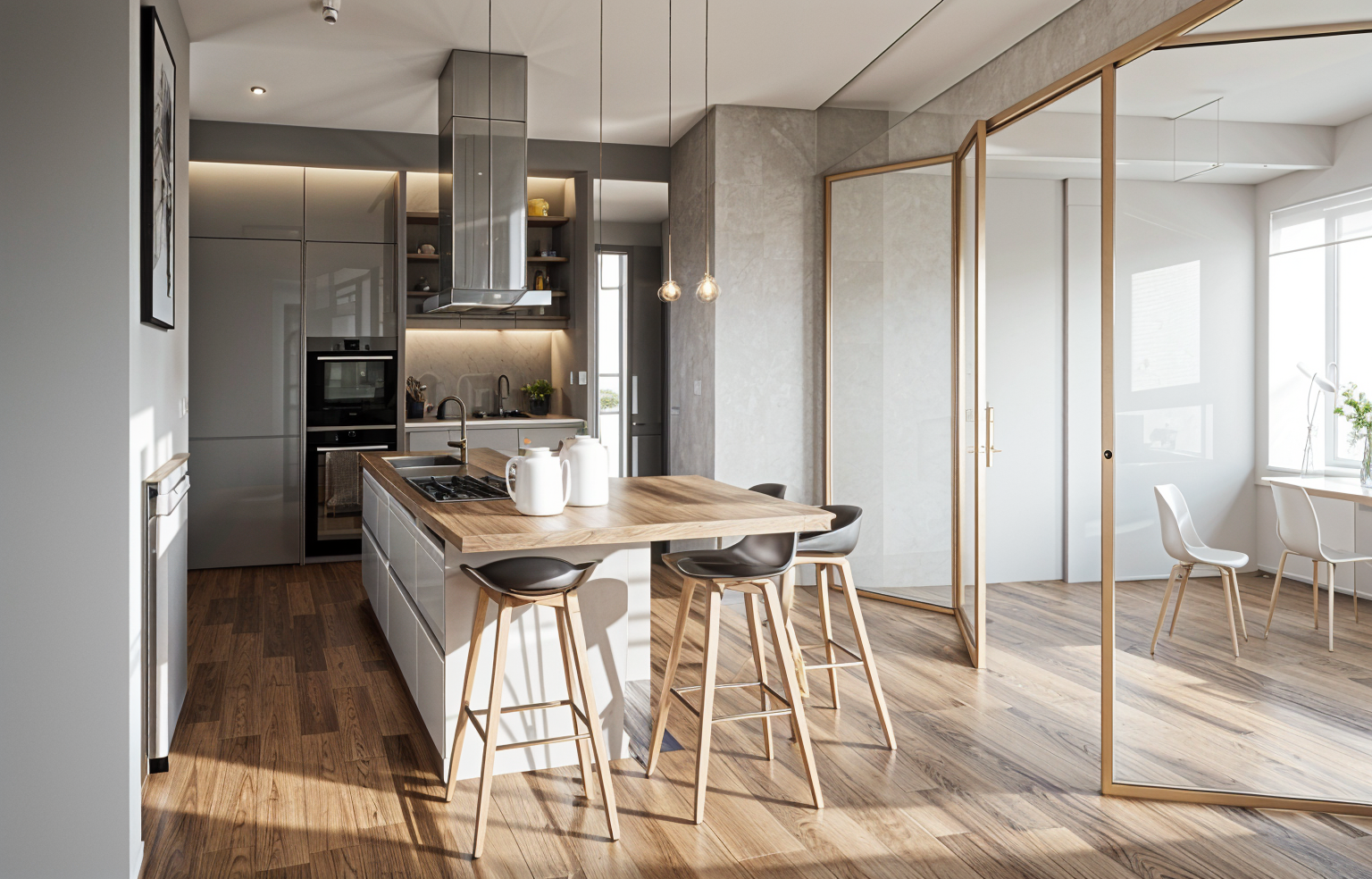 please fix lighting and add necessities for a high end courtyard garden beyond the far curtain wall