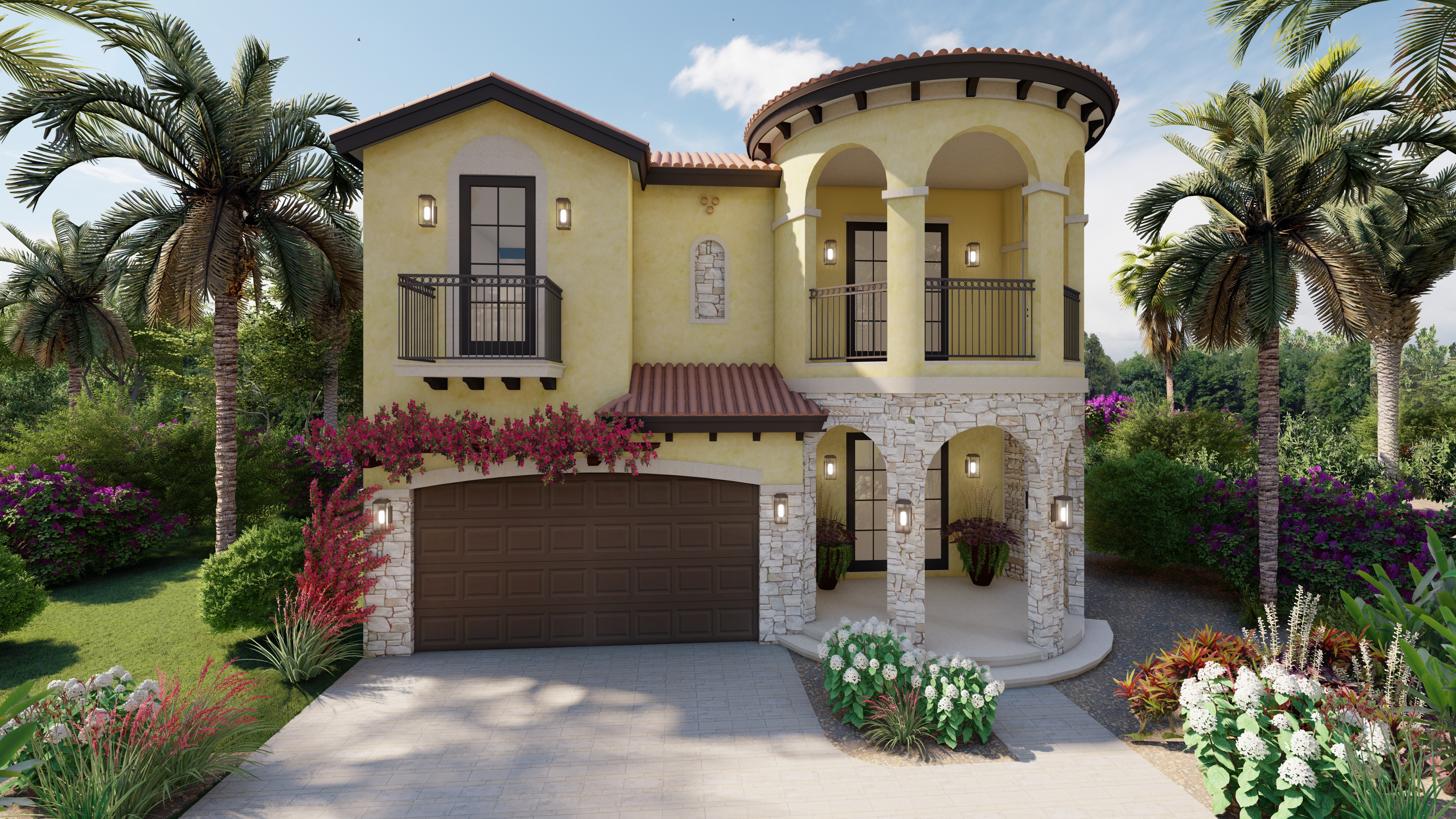 add roof overhang with brackets over balcony door change color to white change stone to modern
