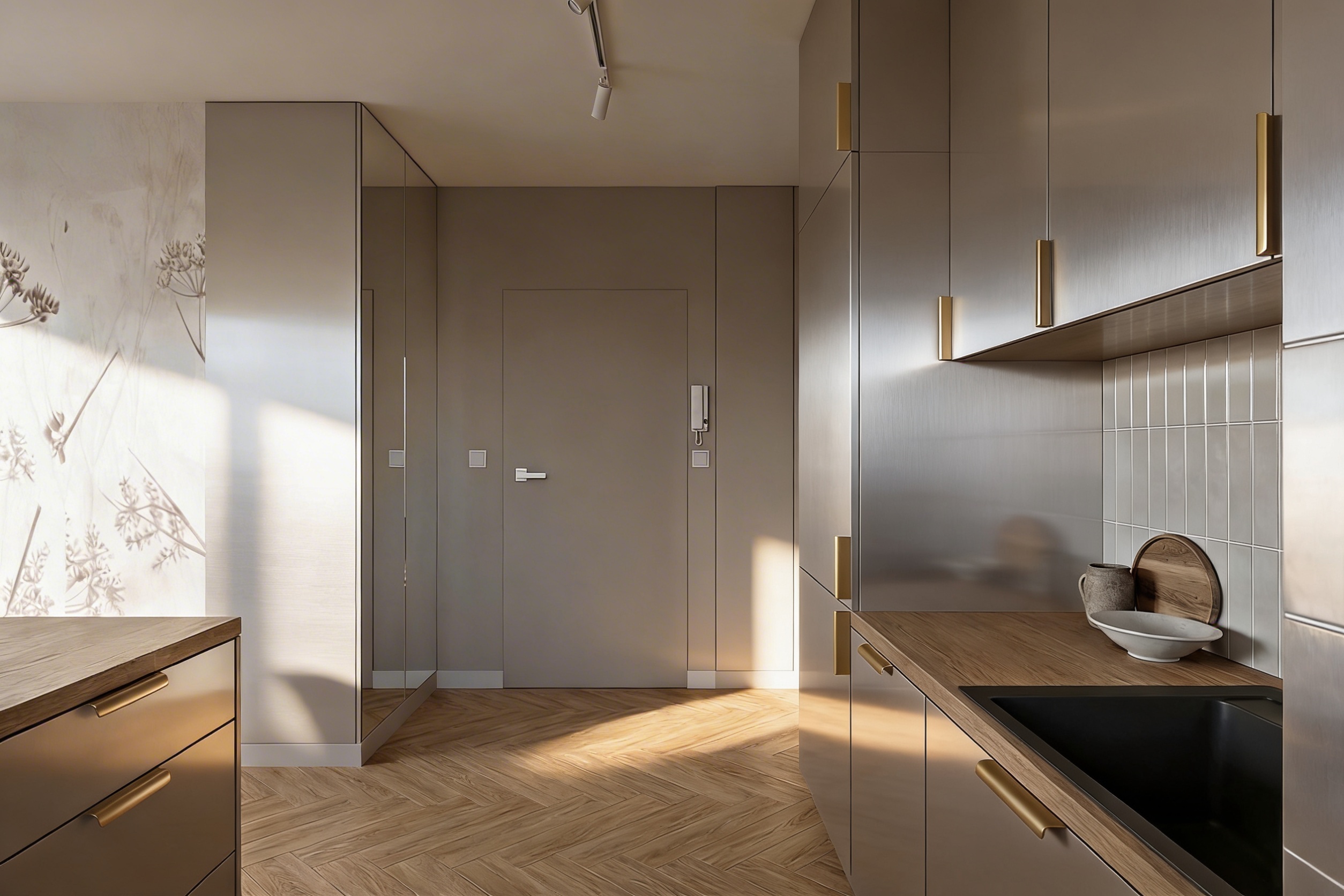 there are vertical led lights at the main entrances facade tile layout as in the picture