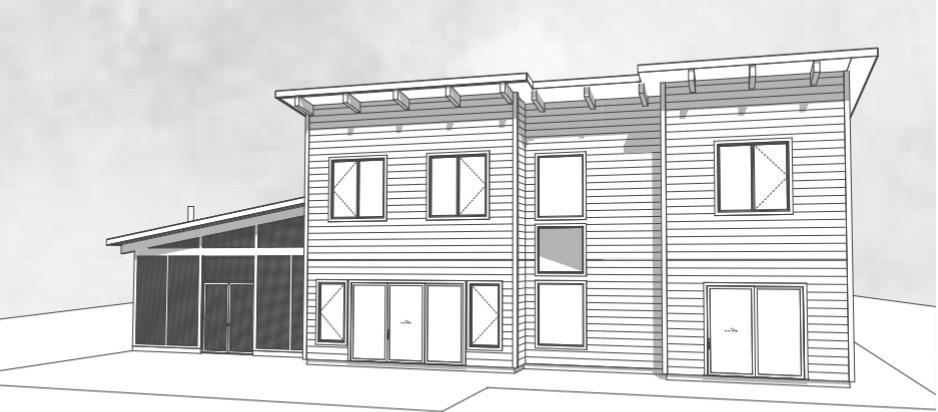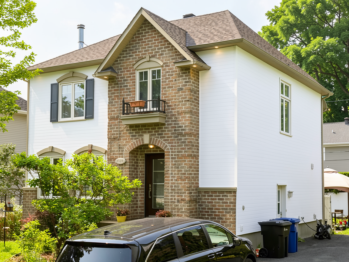 dark grey trims lighter siding country background with trees canada