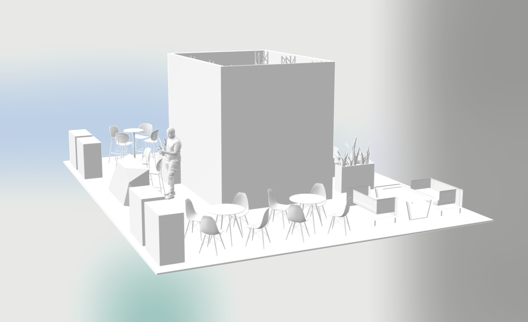 this open cuboid in the center is constructed with an led screen the led screen should feature bp related graphics create a visualization of a bp trade show booth