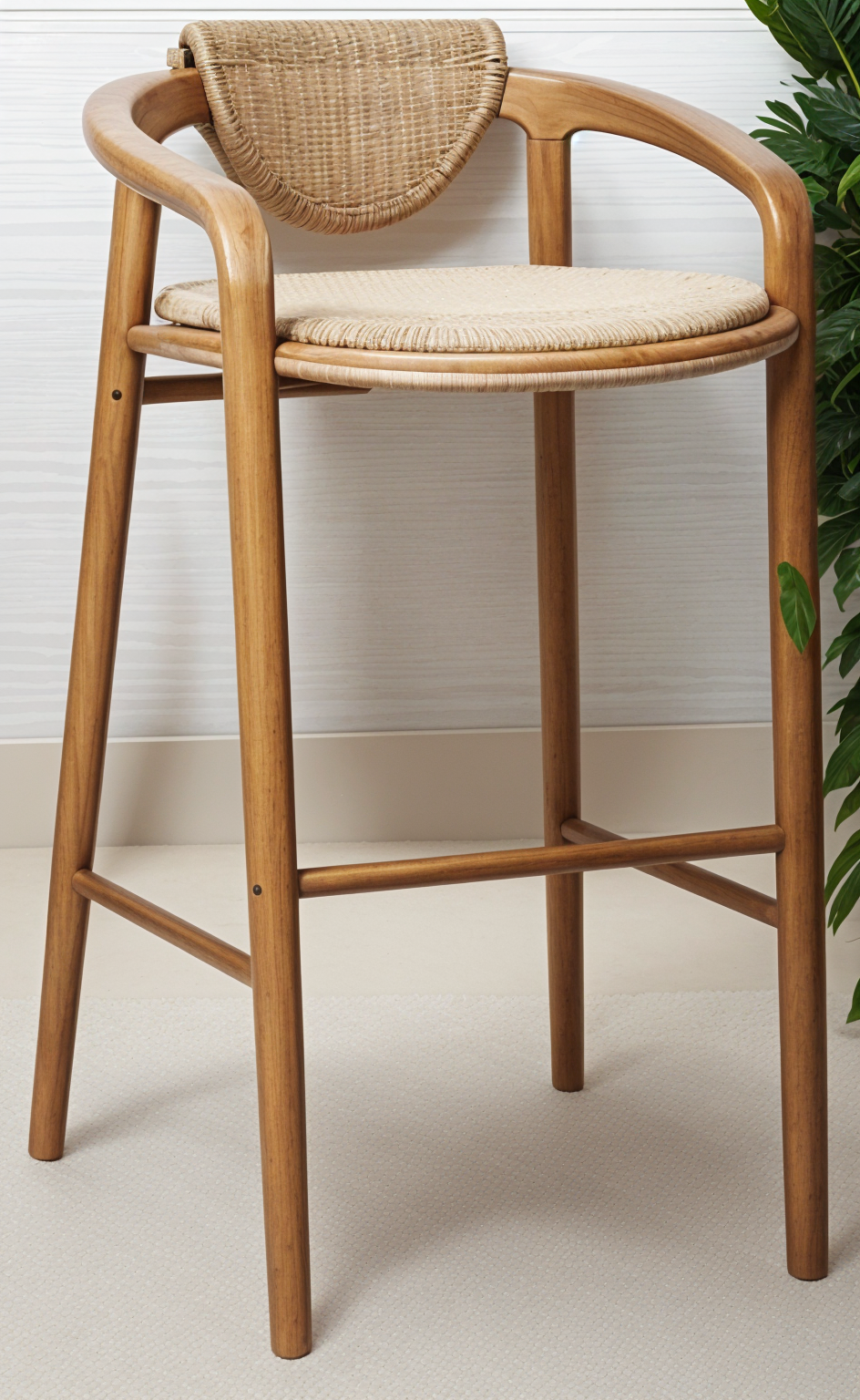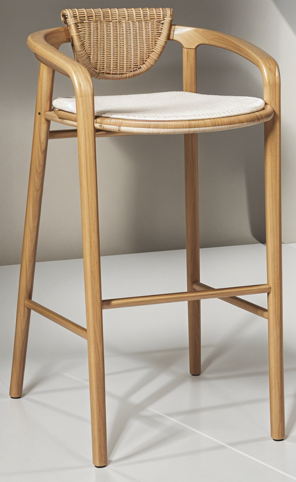 modernist weaving design arm chair upholstered seat and back wooden rattan legs finish architecture