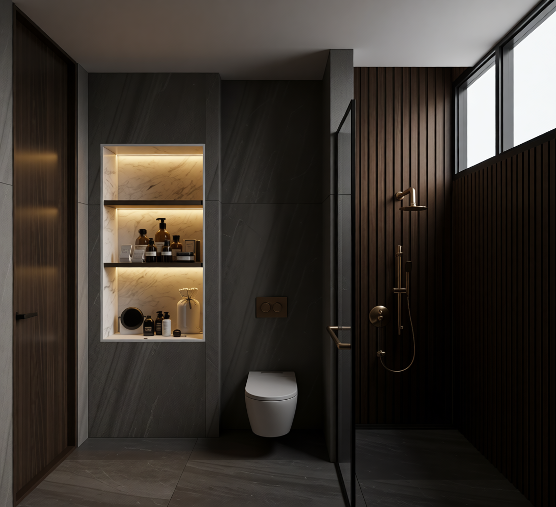 canopy structure weighing station with green roof on top four lanes of traffic with middle medium dividing lanes into 2 and 2 trucks coming out and in to station with tear drop medium in front of station connecting to divider in station