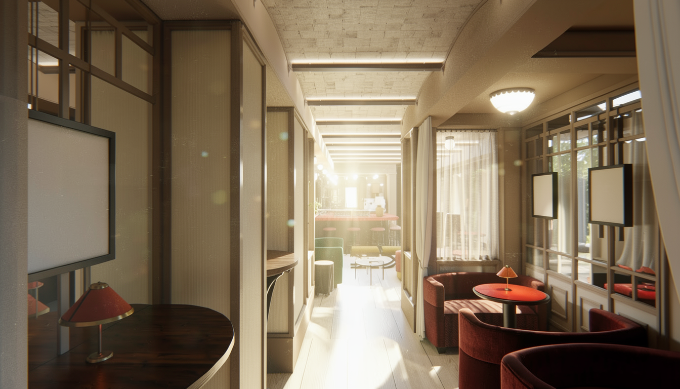add natural lighting make look realistic add nice feature trees and minima landscaping make the driveway go out of frame on the right