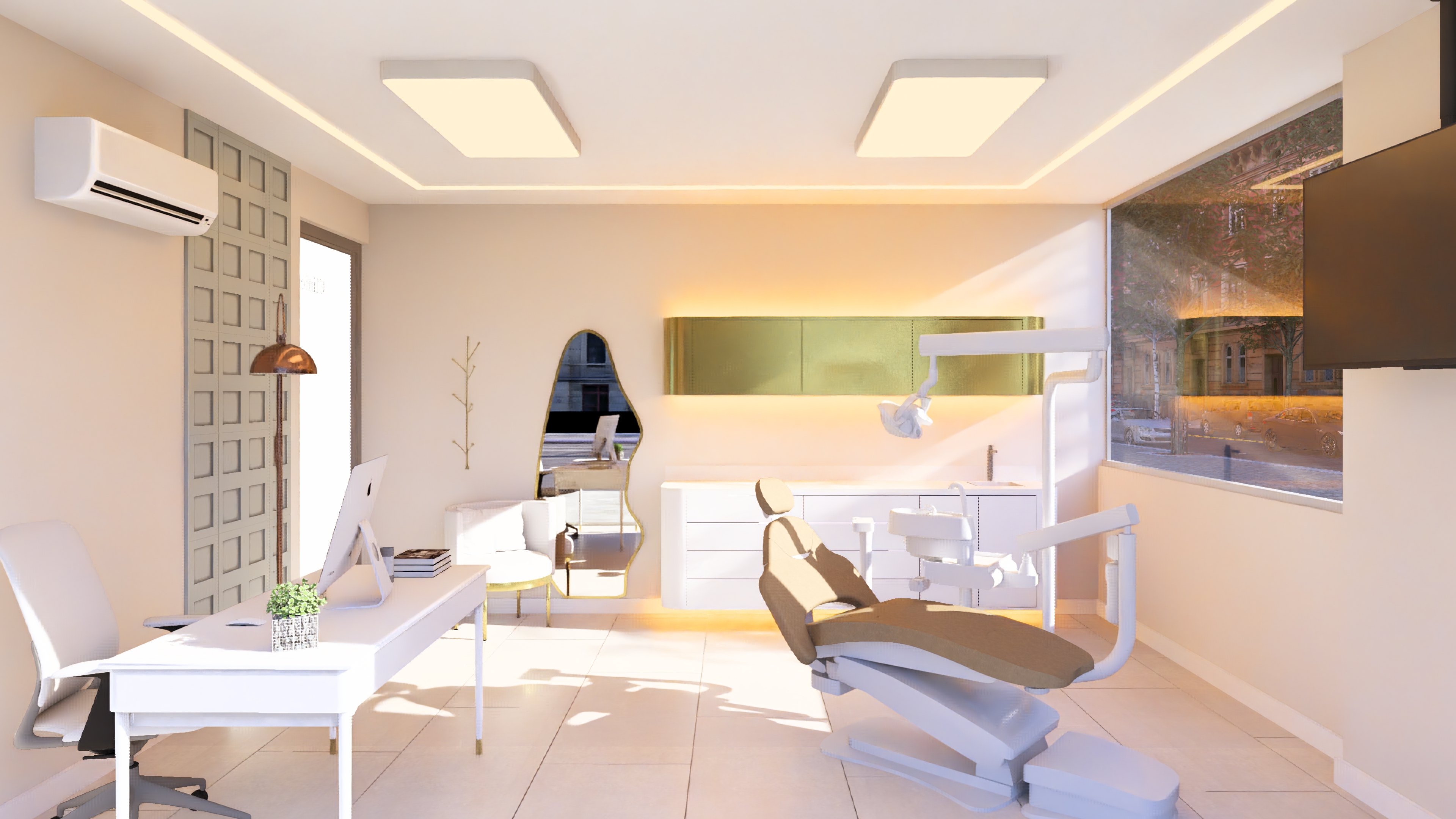 dental clinic soft luxurious and clean frosted glass the writing on it is more distinct colors are livelier