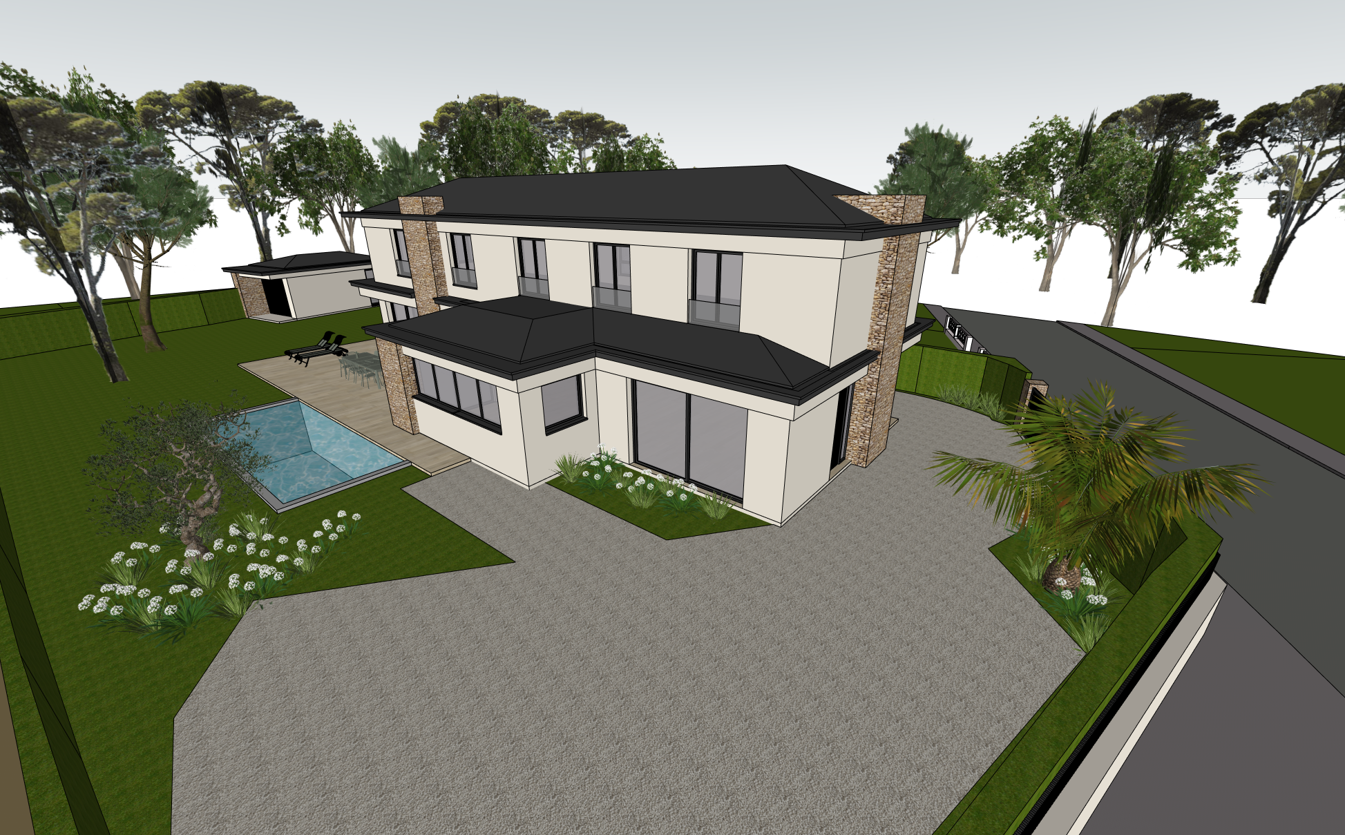 respect exactly architecture walls in white standing seam aluminium roof gravel in white gravels day light soft