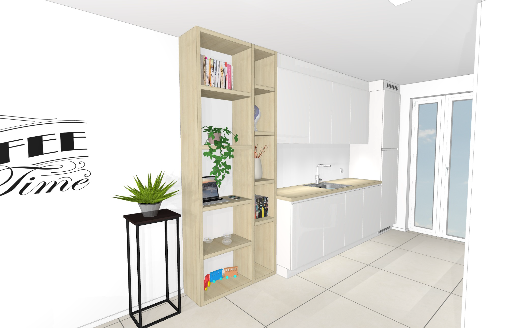 kast onder tv is in witte kleur tevens ook hoge kast aan de rechtse kant