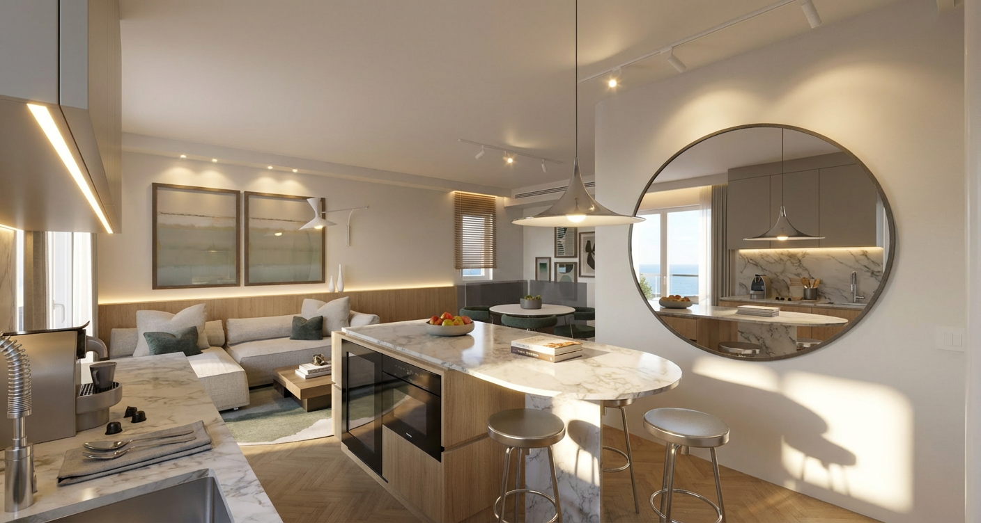 keep all composition furniture flooring columns ceiling lighting plants and gym equipment unchanged add a small number of people a few using gym equipment behind the glass some walking through the lounge and a few seated in the lounge area ensure all people are realistic in scale and proportion apply motion blur to all people including seated walking and exercising to create a full time lapse effect people should wear appropriate clothing gym attire for gym casual modern clothing for lounge and integrate naturally with soft shadows and subtle reflections on surfaces maintain ultra realistic rendering cinematic modern luxury aesthetic do not alter any architectural or furniture elements