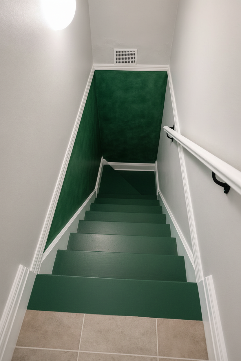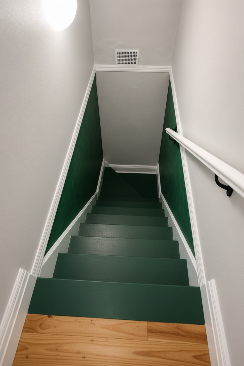 add the same dark green limewash effect to tend wall below the wall moulding add a traditional piece artwork to end wall remove the wall vent