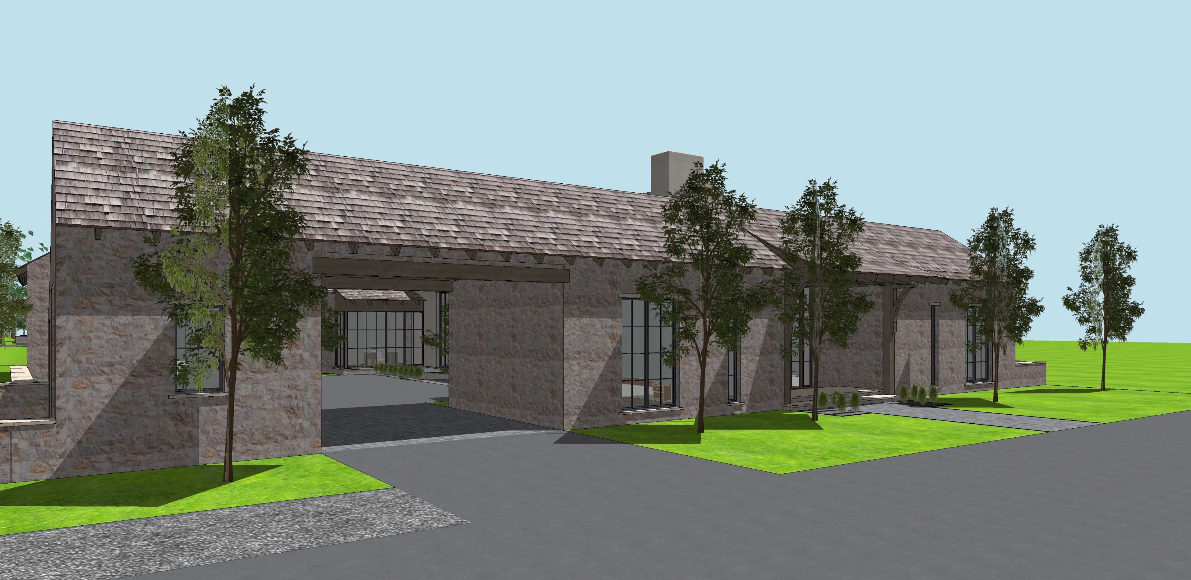 cedar shake roof rough cut limestone cobble stone asphalt antique heavy timber