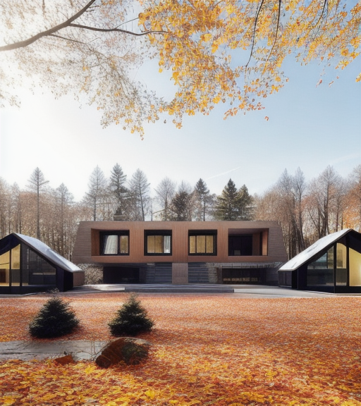 modern architectural building with sleek design featuring dark gray clinker walls with warm corten steel accents and a distinct geometric pattern the building is surrounded by lush vibrant green trees under a partly cloudy sky the atmosphere is serene and modern with a well maintained paved street in the foreground adjacent stands an older apartment building in weathered beige with white framed windows the scene is bright and stylish balancing urban development with natural harmony between 2 buildings goes walkway pavement and asphalt road inside the building are slightly turned on interior light