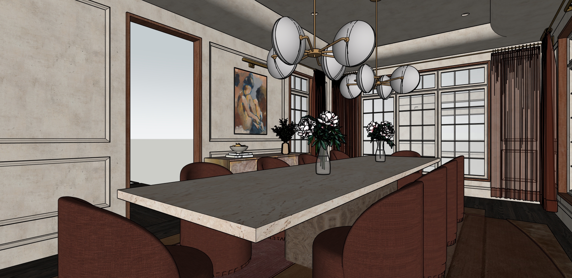 walls and ceiling to be roman clay maintain materials tone and geometry