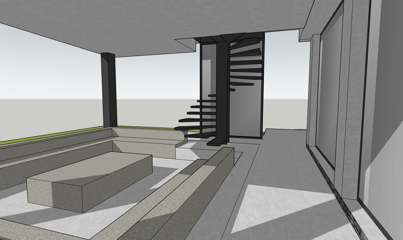 glass is behind staris and meadow behind