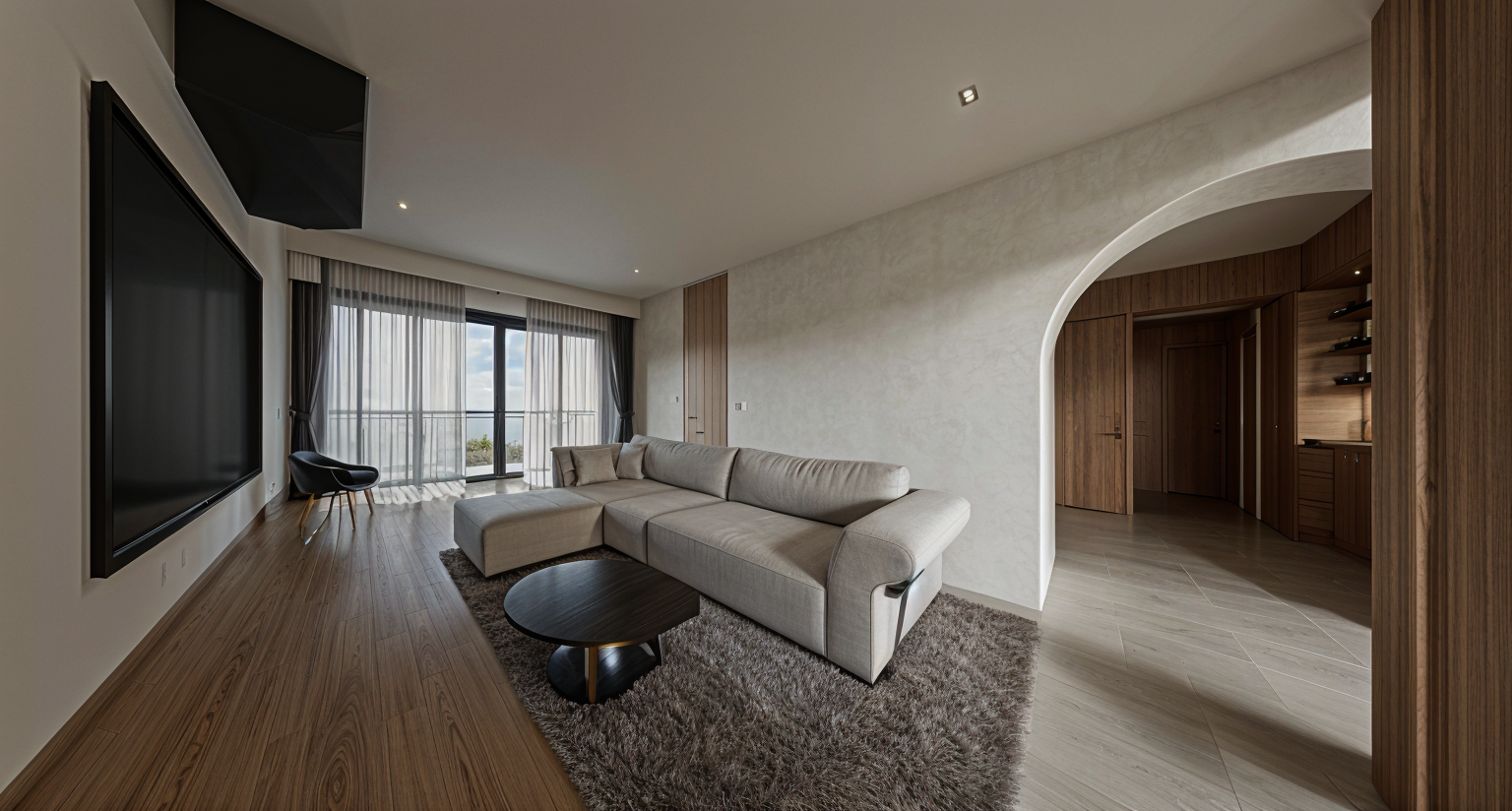 render this image in a realistic style maintaining the exact same composition furnishings and design without adding or removing elements