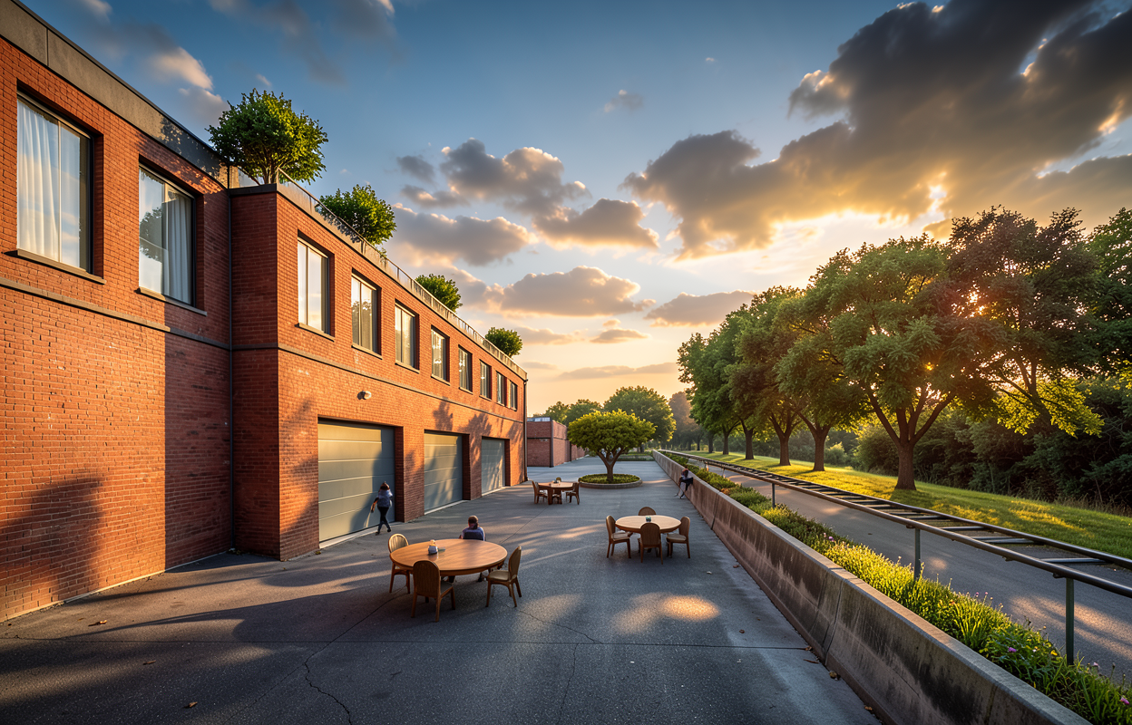 some mediterranean pine trees in the back ground and some olive trees on the grass the facade is color gibraltar from prb and the windows are ral 7016 some tree shadows on the facade