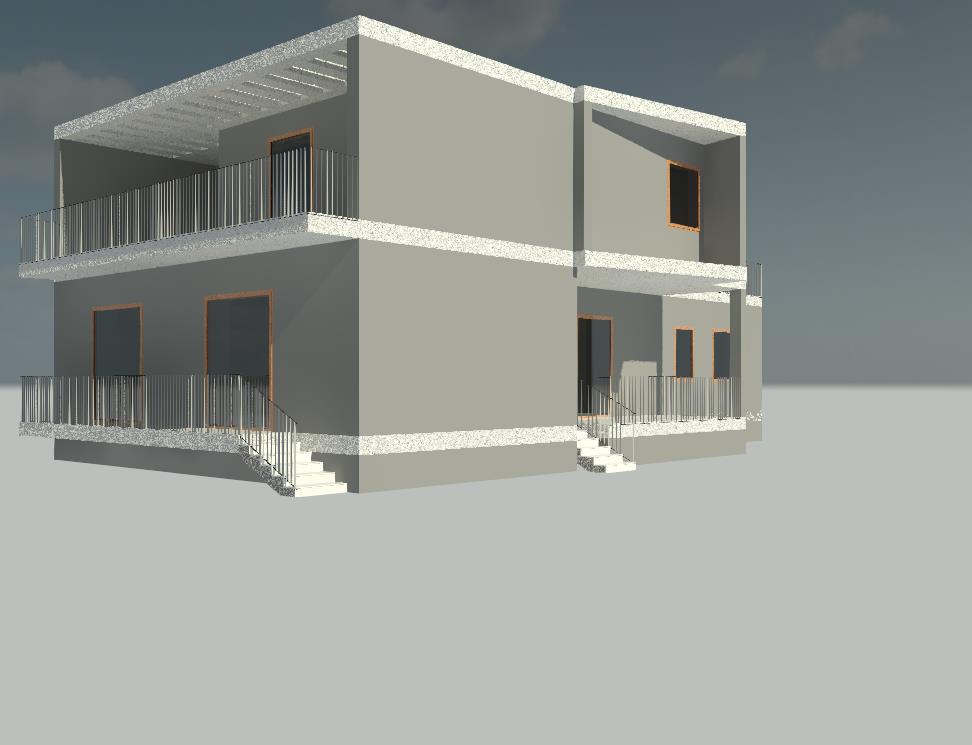 exterior shot elevate the house from the street level add staircases leading to the entrance door