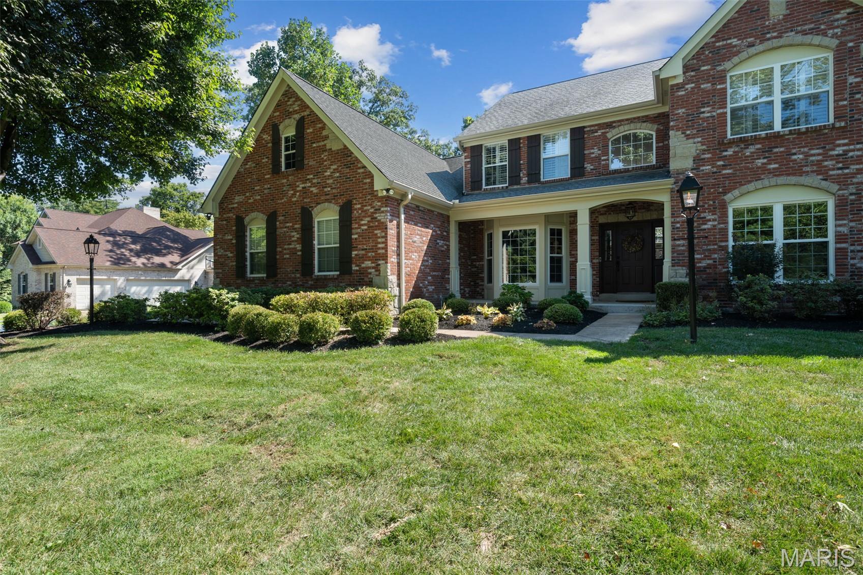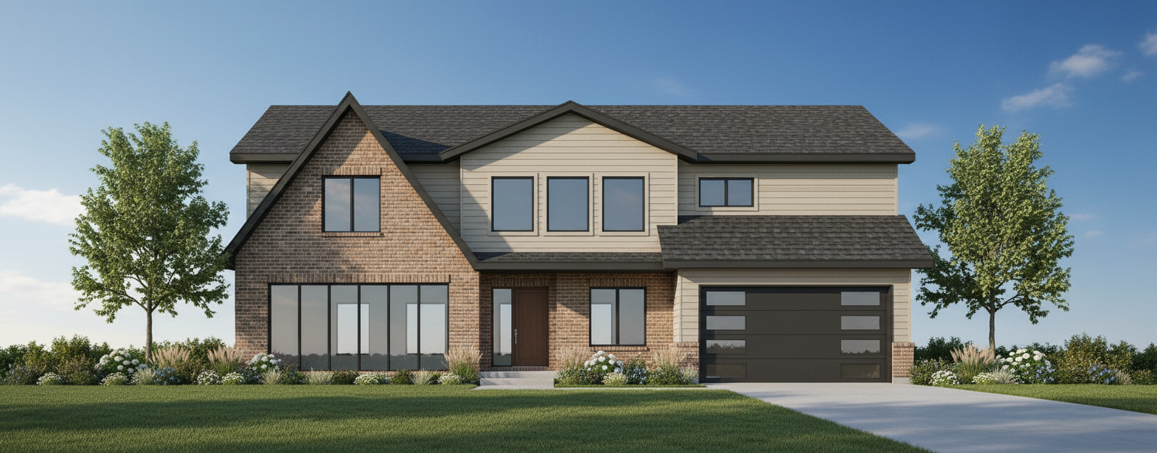 a large abundance of low edges along the facade add hydrangeas remove existing plants and lanterns make the house white with black shutters but leave the architecture of the house and do not remove the walls