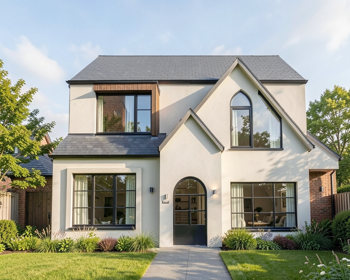 make the garage to have 3 garage doors and 3 dormers above