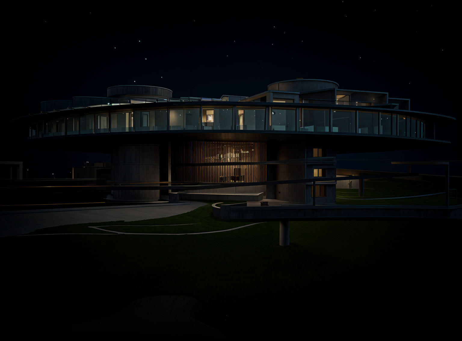render a pale wooden modern hillside villa overlooking the ocean with elegant lines and open spaces the lowest terrace is topped by a neatly planted vegetation patch the middle terrace features an infinity pool with decking surrounded with steps leading to the main dwelling above use a crisp cerulean blue sky as the backdrop illustrate the villa with a blend of beige and light tan walls accented by sleek black trim the roof should be a sophisticated dark slate surround the setting with lush vibrant green grass and foliage with detailed palm and deciduous trees scattered around their leaves gently rustling in a light breeze the atmosphere should feel serene and inviting with warm natural lighting casting soft shadows to emphasize the villa s architecture and the slope of the terrain capture the distant glint of a tranquil blue lake adding depth and tranquility to the scene