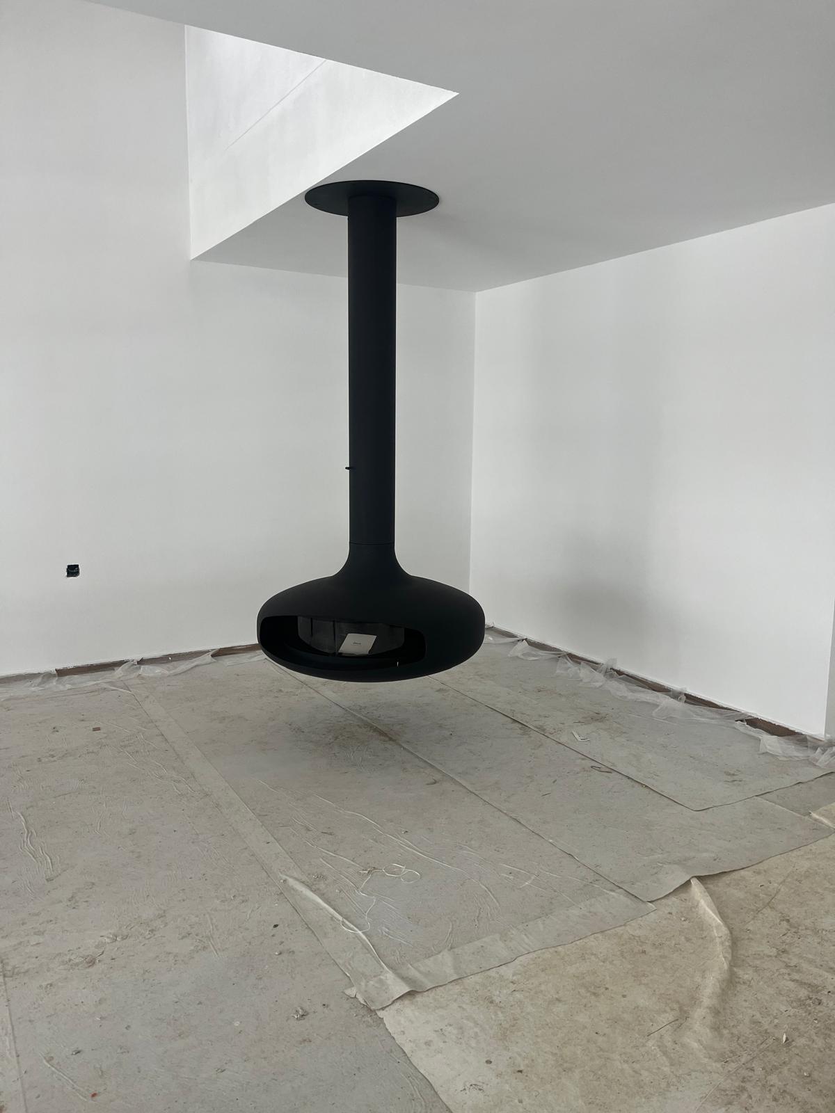 place an l shaped white wall bottom bench rounded bench anthracite gray lacquered finish light gray seat cushions and compositions of decorative cushions on the base backrest of the bench h approx 80 cm put on fire seat 2 people on the left side place a tv unit of the same height as the bench tv placed on the wall