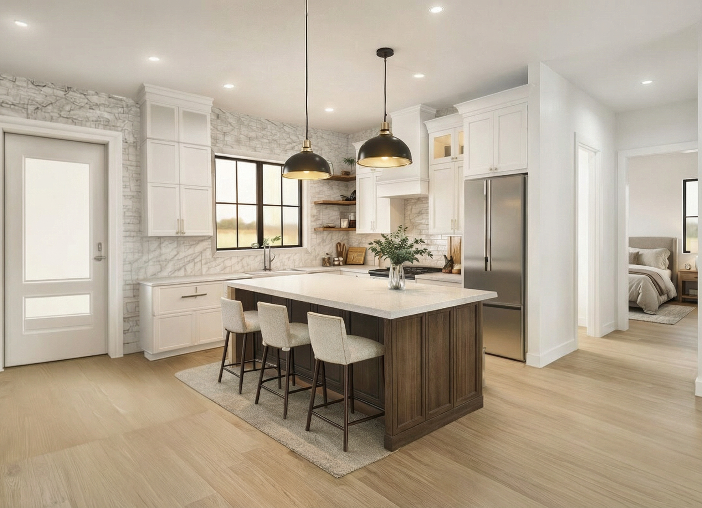 change all the tile in this photo to matte black tile the grout color is to be terrecotta color