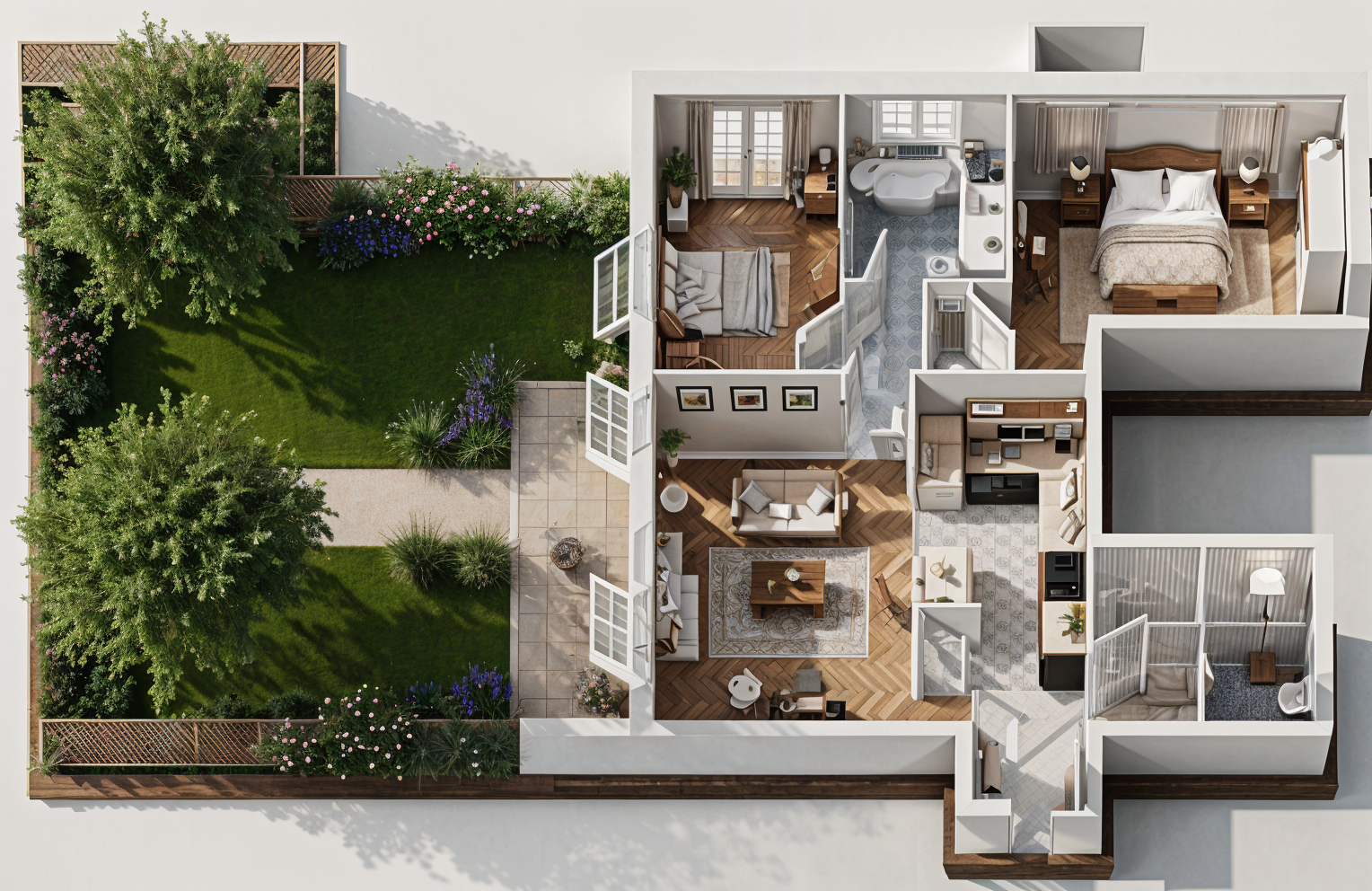 maintain the colours and textures of the image maintain the geometry of image add no background make the wood siding a dark brown