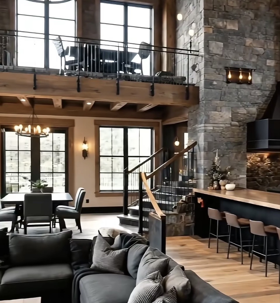 change the floors to polished concrete chaange counters to polished concrete remove the couch and the dining table and chairs change the white walls to vertical steel siding