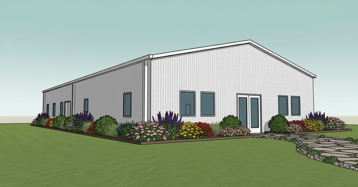 aerial shot make nice spring image from above add some trees no flowers all cars should be white path and terrace made of wood make shadows like at noon architecture